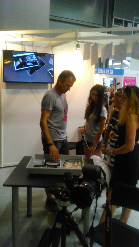 Na Veletrhu vědy se mi líbilo promítání v domu nano-hrůzy, stanoviště České televize a stánek zaměřený na řasy.