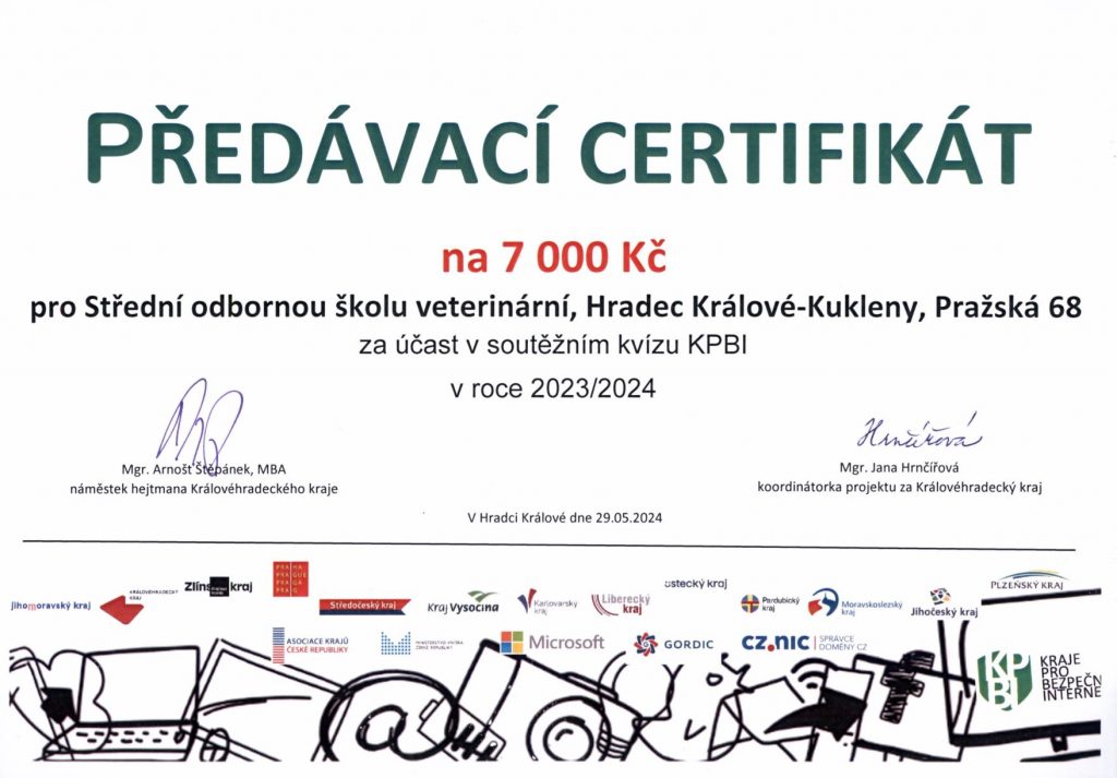 Již po několikáté se naše škola zapojila do projektu Kraje pro bezpečný internet. V letošním školním roce se naše škola v soutěžním kvízu umístila na krásném 5. místě, s čímž se pojila i odměna 7 000 Kč.