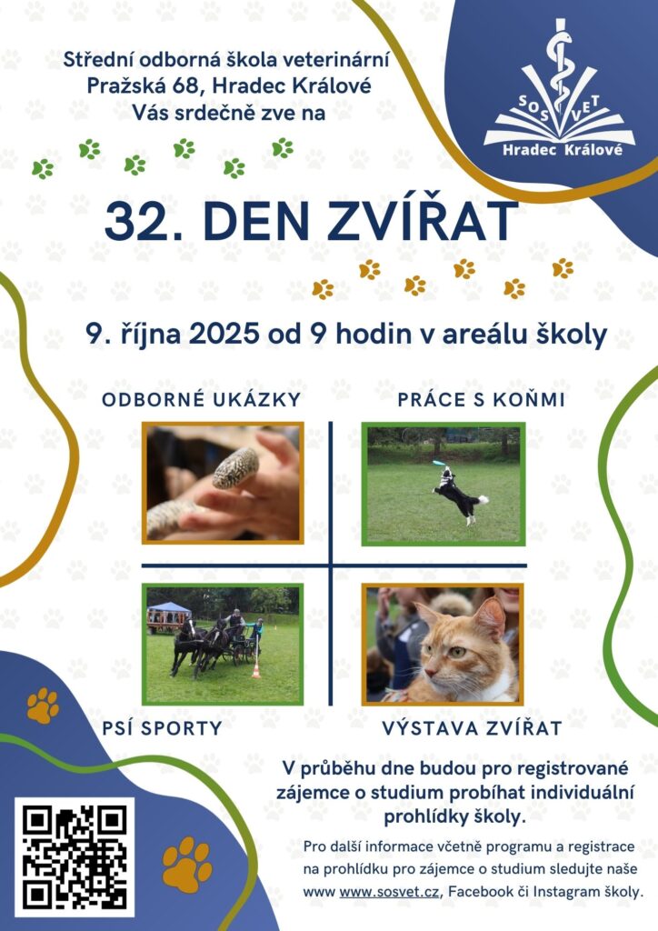 Pro přihlášení tříd (ZŠ, MŠ) kontaktujte MVDr. Javornickou – katerina.javornicka@sosvet.cz. Upozorňujeme, že je počet tříd vzhledem k situaci a možnostem školy opět omezen. Rezervujte si proto své místo včas. Odměnou vám bude individuální program přizpůsobený věku dětí. Hlásit skupiny je pak možné z organizačních důvodů pouze do 3. 10. 2025.