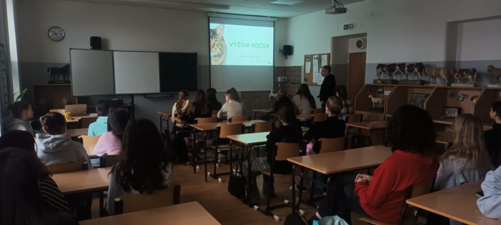 Dne 15.1. 26 naší školu navštívil Ing. Martin Kvaš CSc. – nutriční specialista pro zvířata, tentokrát se svou přednáškou na téma Výživa koček. Přednášky se účastnili žáci druhých ročníků v rámci předmětu Výživa zvířat.