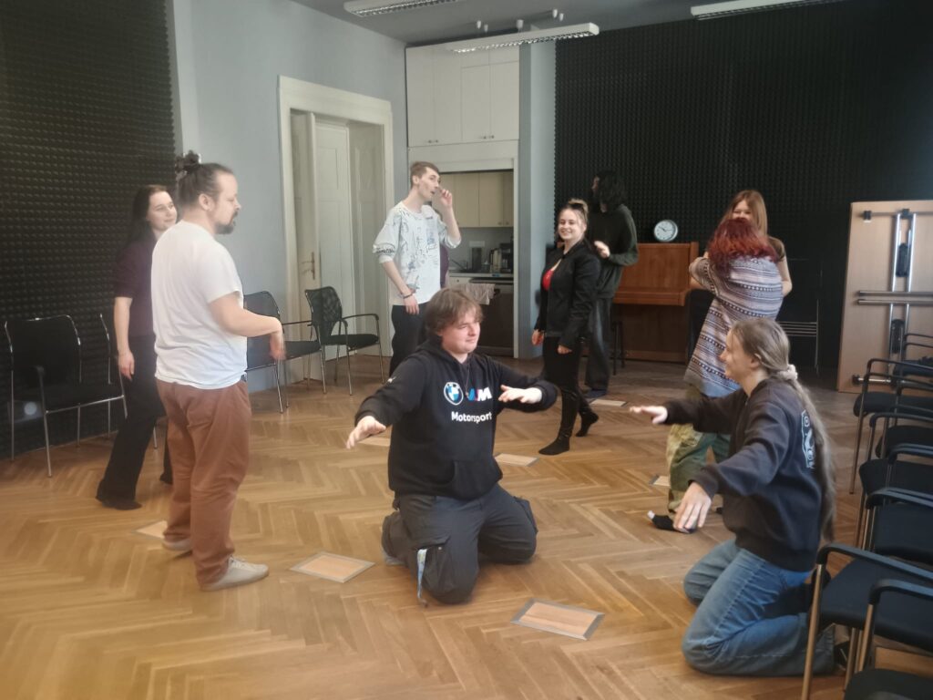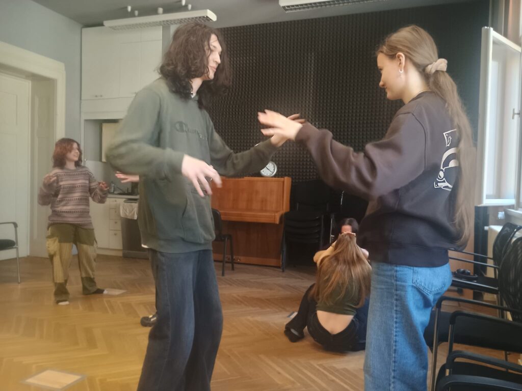 V Centru uměleckých aktivit se pod taktovkou lektora Tomáše Jirečka konal improvizační workshop našeho dramatického kroužku. Jeho podtitulem bylo: Improvizace je jako skok padákem, který si otvíráš až během letu, ale neboj, přistání je vždy do měkkého…